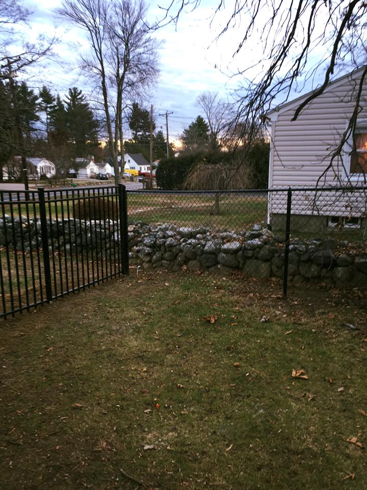 On Brook Street in Framingham, a freshly completed job features aluminum fencing up front and an extensive 200 feet of chainlink to secure the backyard for pet safety. Our portfolio exhibits this mix of curb appeal and canine freedom. For fenced freedom of your own, reach out to us.