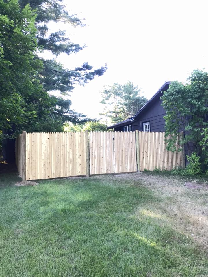 Holliston’s Regal Street is now secured with a new 6-foot high cedar stockade fence, combining durability with stately aesthetics. Our portfolio shows how your property can gain both privacy and a regal appeal. In need of a solid fencing upgrade? We’re just a call away.