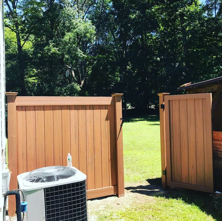 You may think it’s wood, but this latest project showcases the lasting charm of a vinyl fence with a cedar wood grain appearance and natural streaking. Featured in our portfolio, you can witness how we blend natural aesthetics with the unbeatable longevity of vinyl. Imagine this low-maintenance beauty in your yard? Get in touch with us.