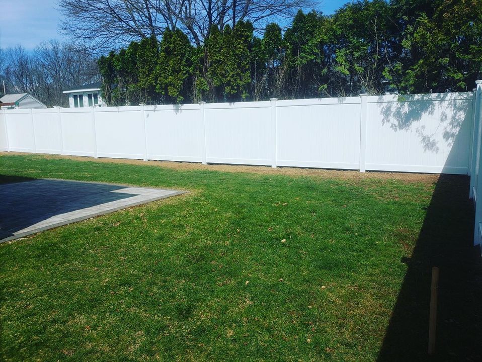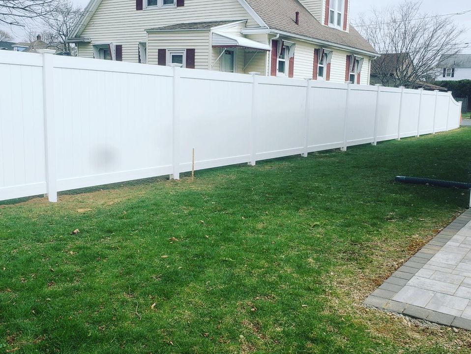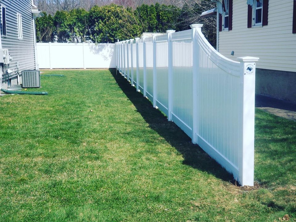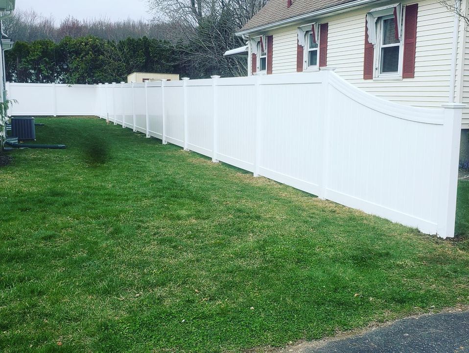 Todds crew wrapped up a stunning white vinyl privacy fence featuring elegant 6-to-4-foot curved top transitions in Milford. Find inspiration in our portfolio that illustrates fencing not only offers privacy but also enhances your homes aesthetic. To bring such elegance to your property, get in touch for a free estimate.