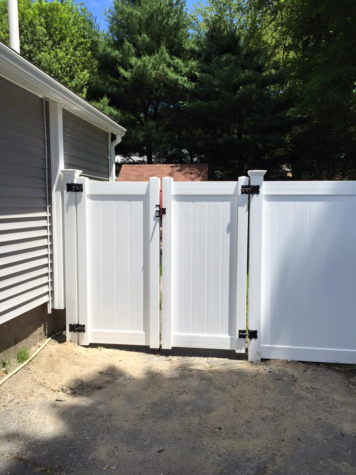 A significant upgrade on Rt 27 in Natick: a splendid 6-foot wide double drive gate complemented by pristine white vinyl sections. This installation exemplifies our ability to provide functional yet aesthetically appealing fencing solutions. Need a fence that stands out? Let us know.