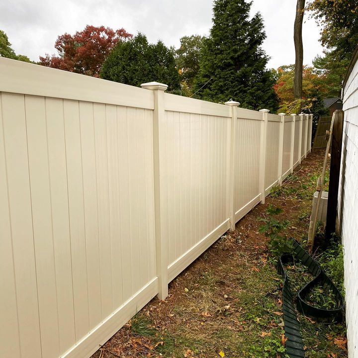 A customer in Natick chose a stunning tan vinyl, proving the versatility of color options we offer to match personal styles. Interested in varying your vinyl? Explore our portfolio for inspiration and let us guide you to your perfect fence color. Call for your bespoke solution.