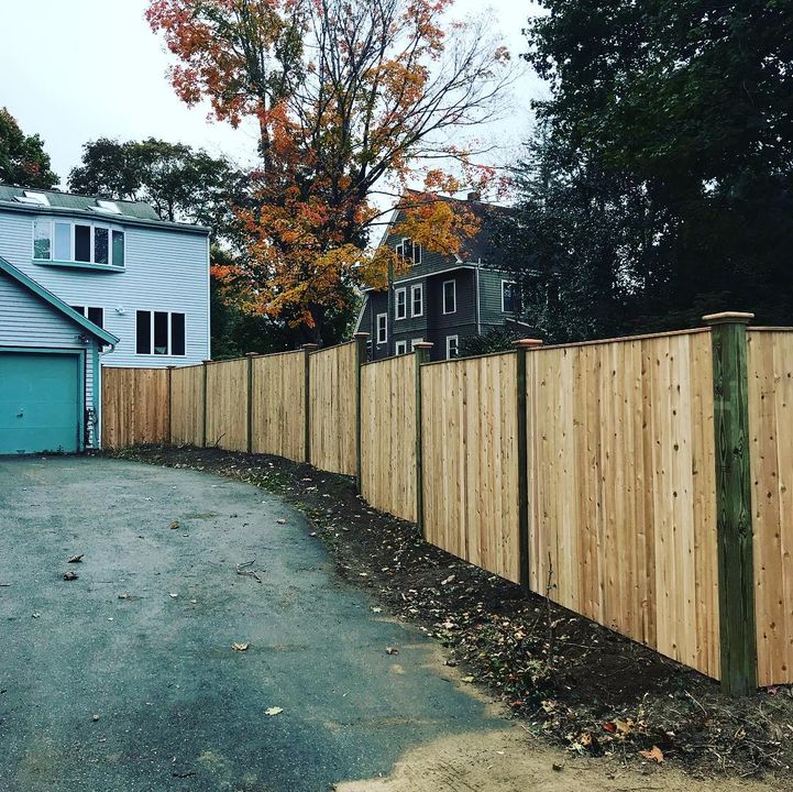 A stepped cedar fence was artistically installed for a Needham resident, beautifully following the land’s natural contours. Our portfolio showcases this cascading wood design, perfect for sloped properties. Season’s end is near, but it’s not too late to book your unique cedar fencecall today.