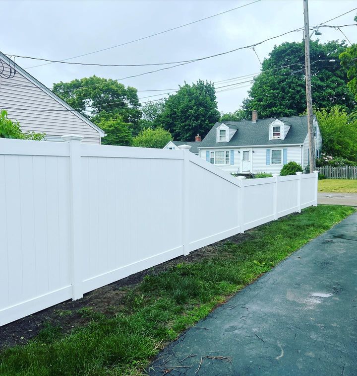 Keegan’s crew installed a 6-foot high vinyl privacy fence that transitions down to 4 feet alongside the street, providing the perfect balance of privacy and openness. This practical yet stylish fencing solution is now on display in our portfolio. Let us tailor a fence to your property’s specific needs; contact us for a free estimate.
