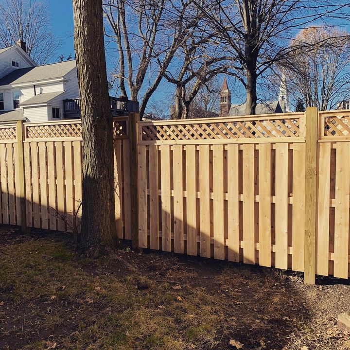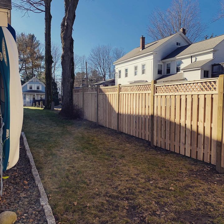Our team completed a stunning lattice-top shadow box cedar fence, adding privacy and decorative flair to a home in Westborough. As we gear up for the new year, consider giving us a ring to secure your spot for a fencing upgrade just like this one.
